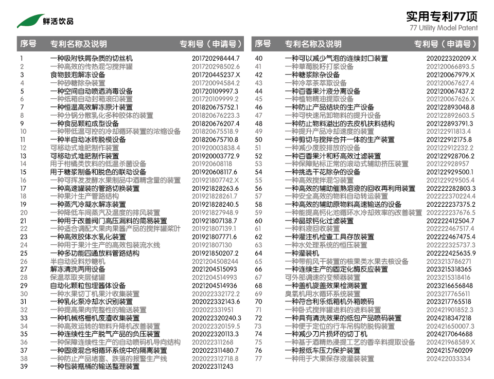 产线布局:果汁、果粒、口感颗粒、糖浆、植物蛋白、固体饮料;